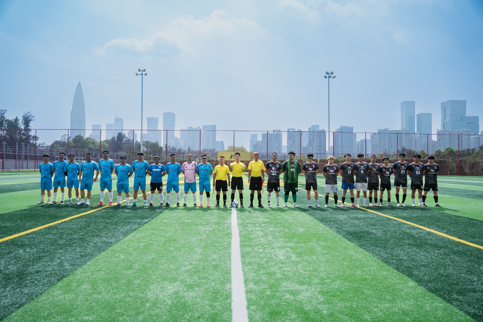 由內地跨境電商業界代表組成的廣深跨境電商足球隊,與連城集團代表隊同場競技,在綠茵場上展開了一場精彩而友好的較量。
